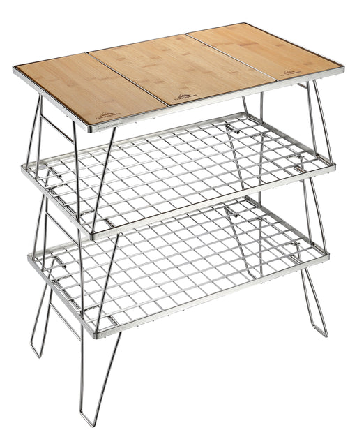 CK-3-CP Camping IGT Grill Table Foldable w/Bamboo Top Plate Stainless Steel Triple-Tier