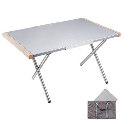 View full detailsStainless steel embossing camping table made by CAMPINGMOON. A light-weight foldable camping table, which has a stainless steel top and embossi...