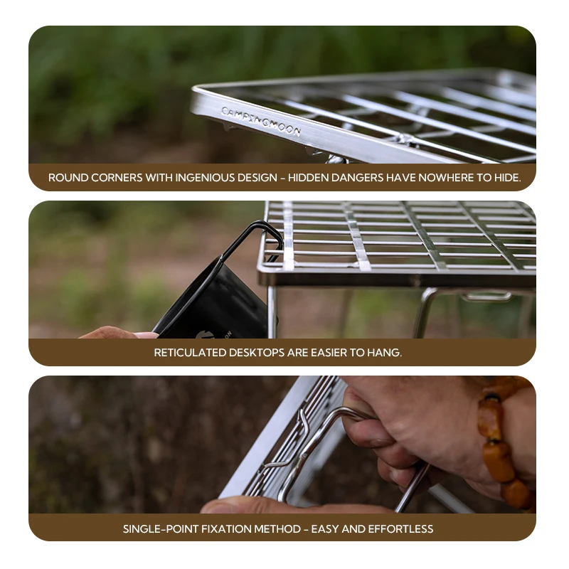 CAMPINGMOON Heavy Duty Camping BBQ Storage Table Rack Silver Stainless Steel Outdoor Folding Table for BBQ