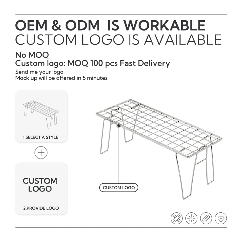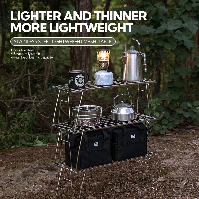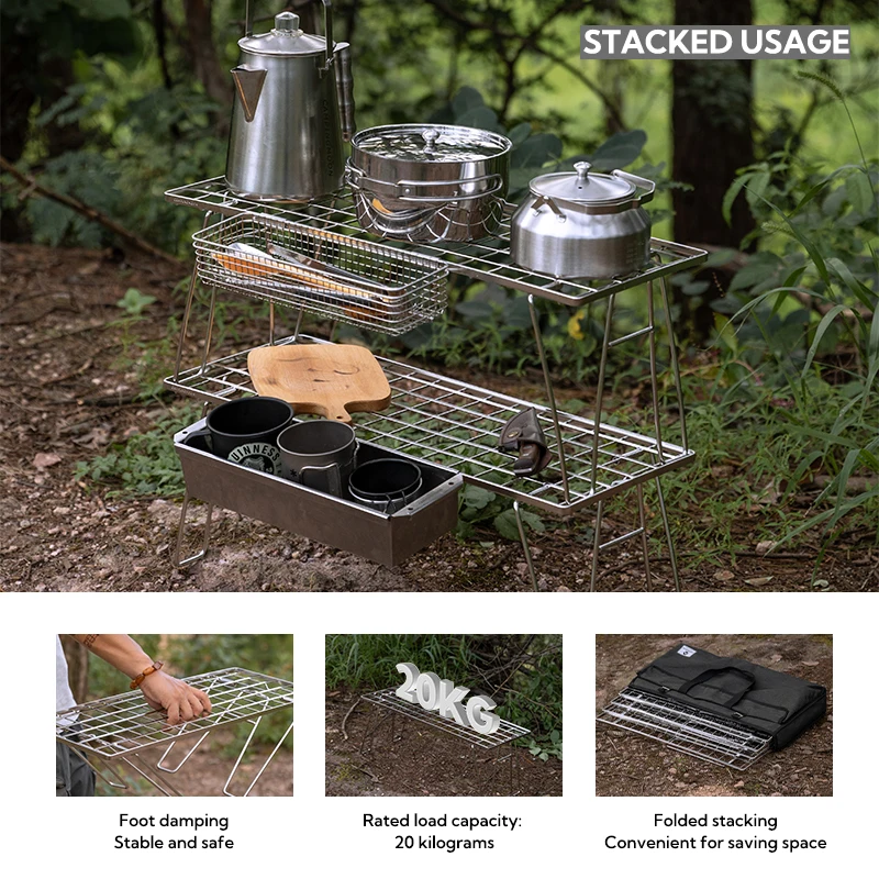T-225A Heavy Duty Camping BBQ Storage Table Rack Silver Stainless Steel Outdoor Folding Table for BBQ